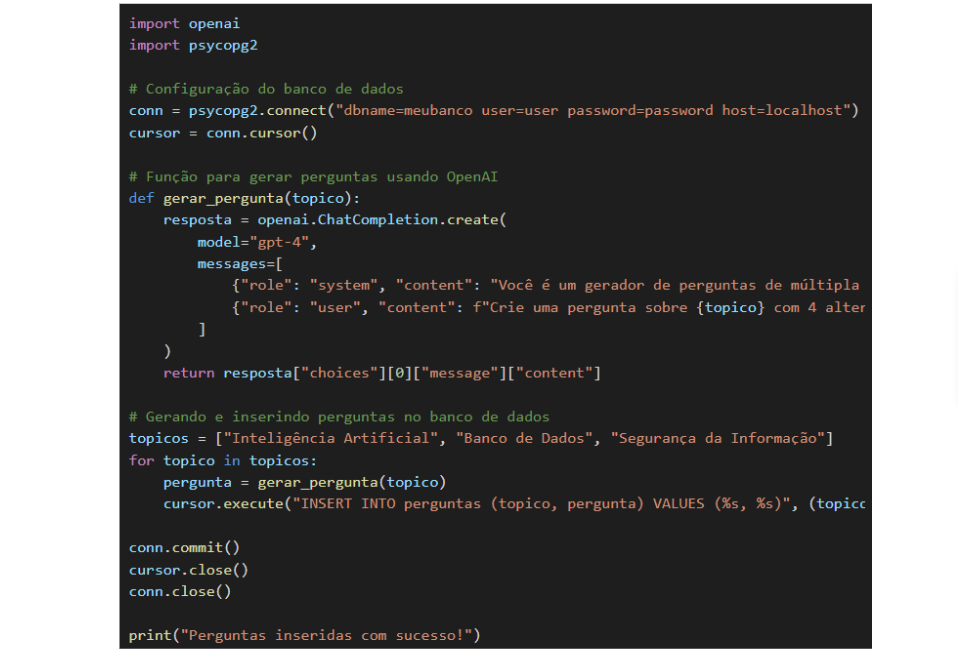 Exemplo Prático: Gerando Perguntas e Inserindo no Banco de Dados