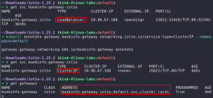 Agora vamos alterar o tipo de serviço para ClusterIP adicionando uma anotação no Gateway bookinfo-gateway: