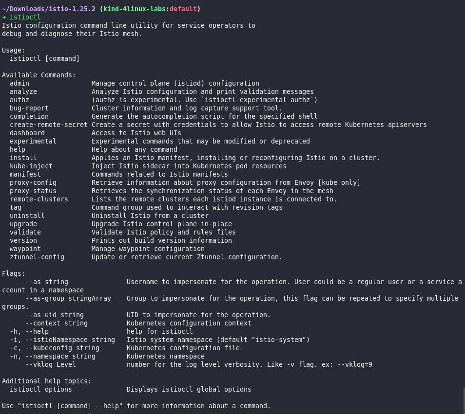 Para validar se está tudo certo basta executar o binário com comando istioctl: