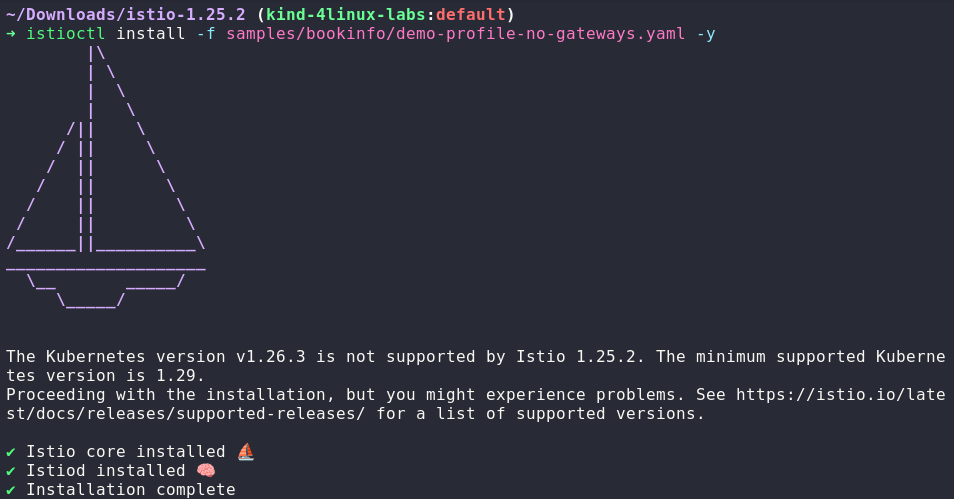 A instalação do manifesto pode ser feita utilizando o istioctl conforme abaixo: