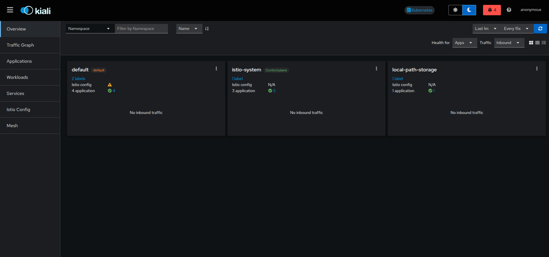 Este comando irá abrir o Kiali no seu navegador padrão: